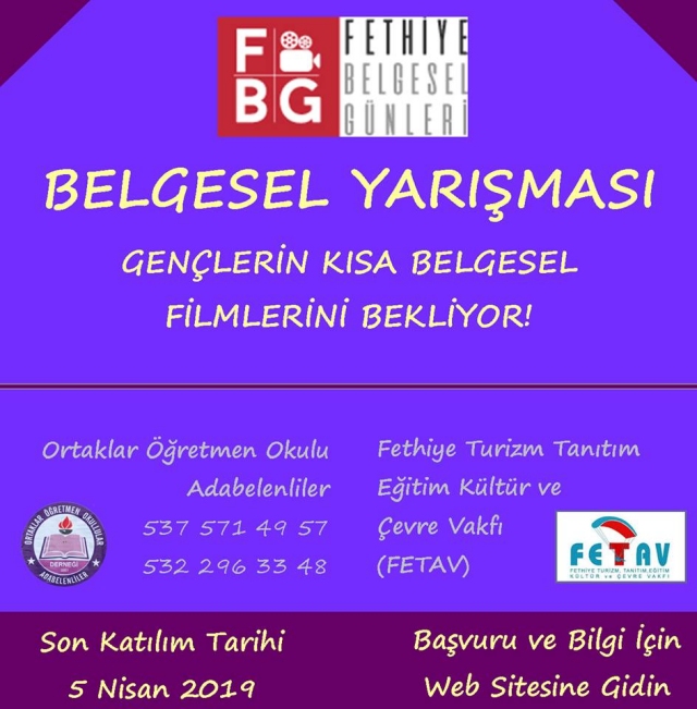 Fethiye Belgesel Film Yarışması, 19-20 Nisan 2019 tarihlerinde yapılacak Fethiye