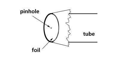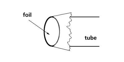 İçi boş büyük tüpün ucu, siyah bant ile kapatılır. Bu alüminyum folyonun