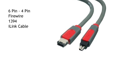 Bir 1394 kablosu için, bir uçta 6 pinlik çıkış, bir ucunda ise 4 pinlik çıkış