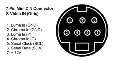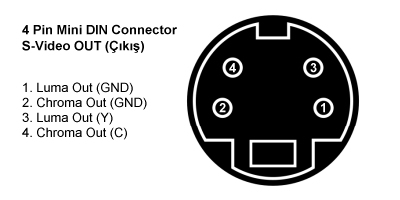 7 pinli Mini DIN bağlantı ucu ise diğer cihazlarla S-Video çıkışı olan cihazlar