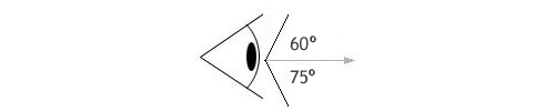Dikey görüş açısının 60 derecesi yukarıya doğru, 75 derecesi ise aşağı doğrudur.