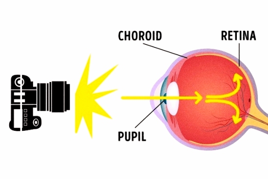 Flaş ışığının göz içini tam olarak doldurmasından dolayı, flaşlı fotograflarda göz kırmızı görünmektedir.
