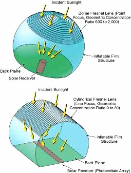 Güneş panelleri ışığı her noktadan alarak daha randımanlı çalışması amacıyla fresnel merceklerden üretilmektedir.